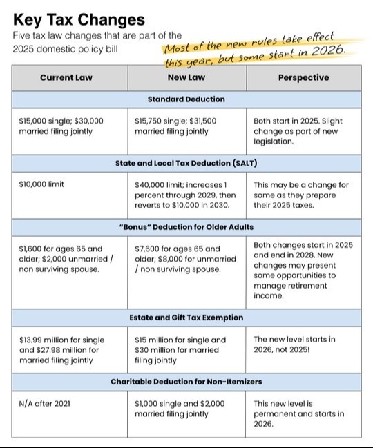 As always, we would also encourage you to speak with your tax professional if you have any questions about how the new changes may affect your specific 2025 tax return.