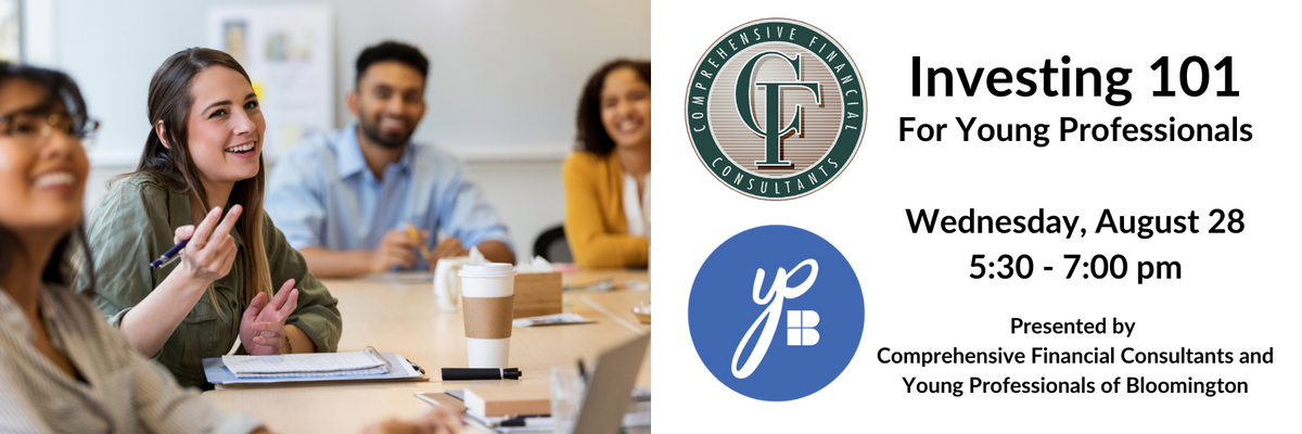 You’re invited to join the Young Professionals Bloomington group for a friendly and informative evening at our "Investing 101" event on Wednesday, August 28th, from 5:30 to 7:00 pm at Comprehensive Financial Consultants. There is no cost for this event.