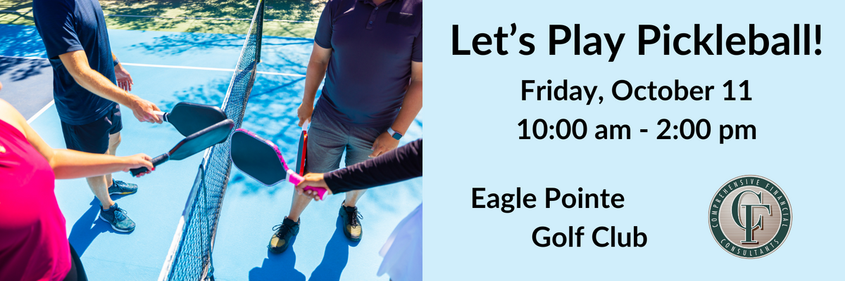Join us for a few hours of fun on the pickleball court! Whether you're a novice or an expert, we want to see you at Eagle Pointe on Friday, October 11. The fun begins at 10:00 am with an introductory lesson followed by a fast-paced tournament beginning at 11:00.